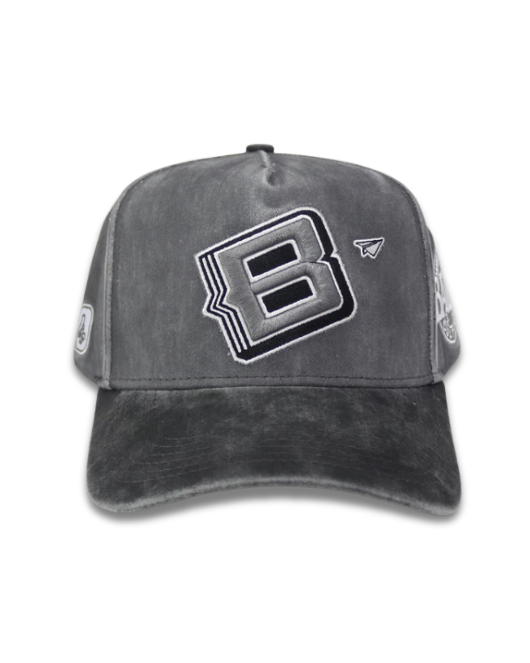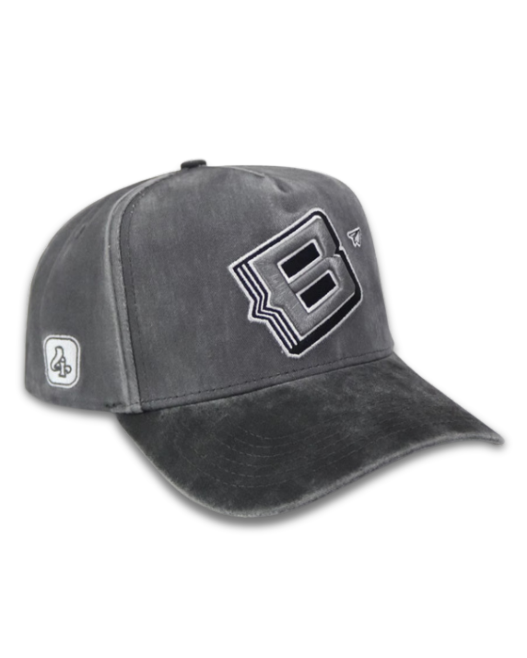 • Features layered “B” embroidery on the front panel for bold statement styling