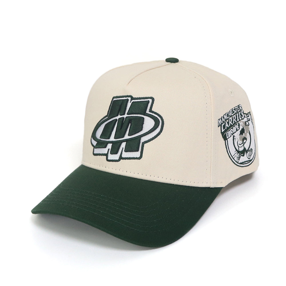 • Features oversized green “M” embroidery on the front panel for standout branding